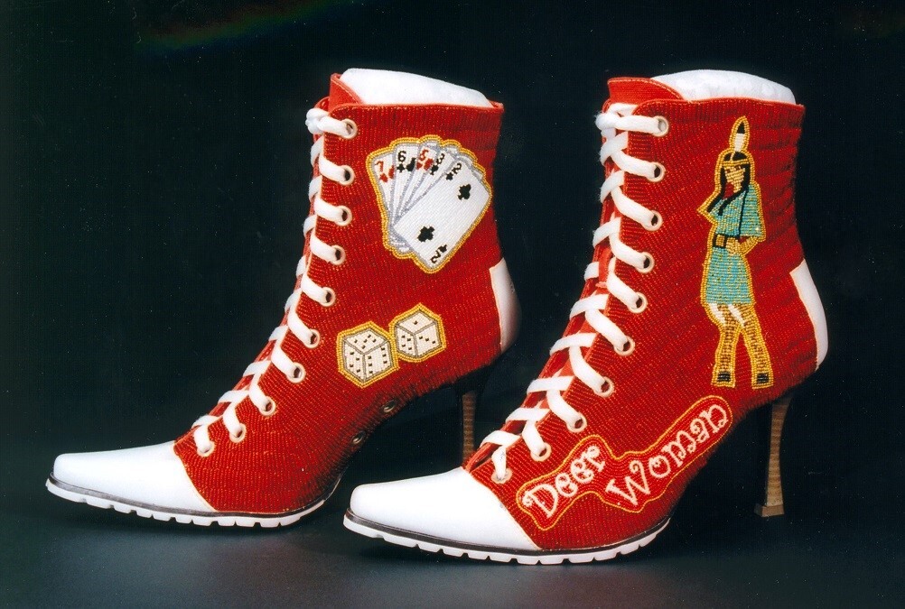 Materials: Size 13 cut beads, Silver lined seed beads, heeled shoes